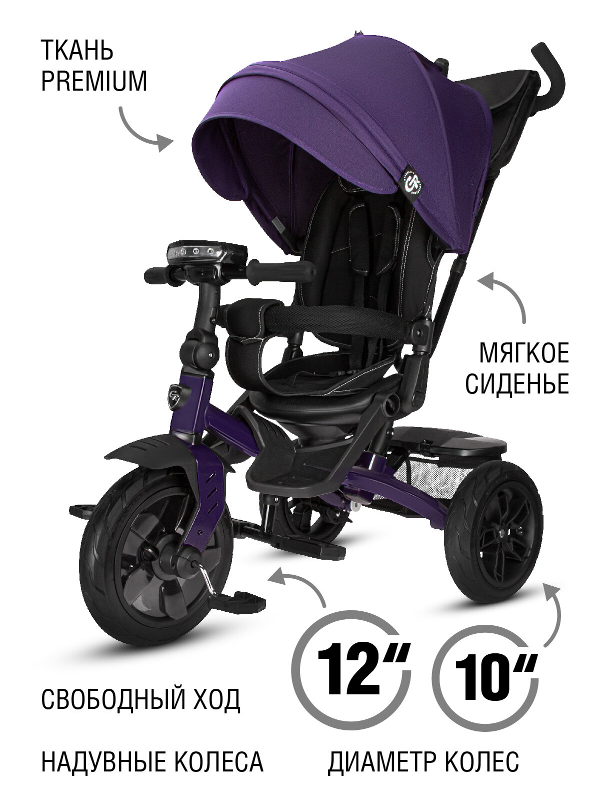 Велосипед детский 3-колесный ТМ CITYRIDE LUNAR, складная крыша, надувные колеса 12"/10", ножной тормоз, поворот сиденья 360◦, свет/звук, CR-B3-10NA
