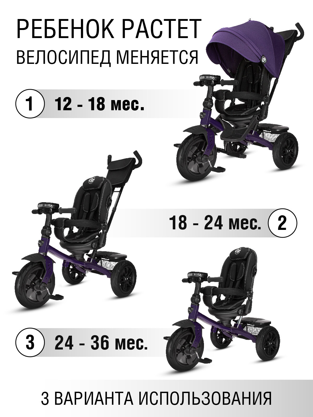 Трехколесный велосипед CITY-RIDE Трехколесный велосипед CITY-RIDE CR-B3-10 Lunar, черный/белый