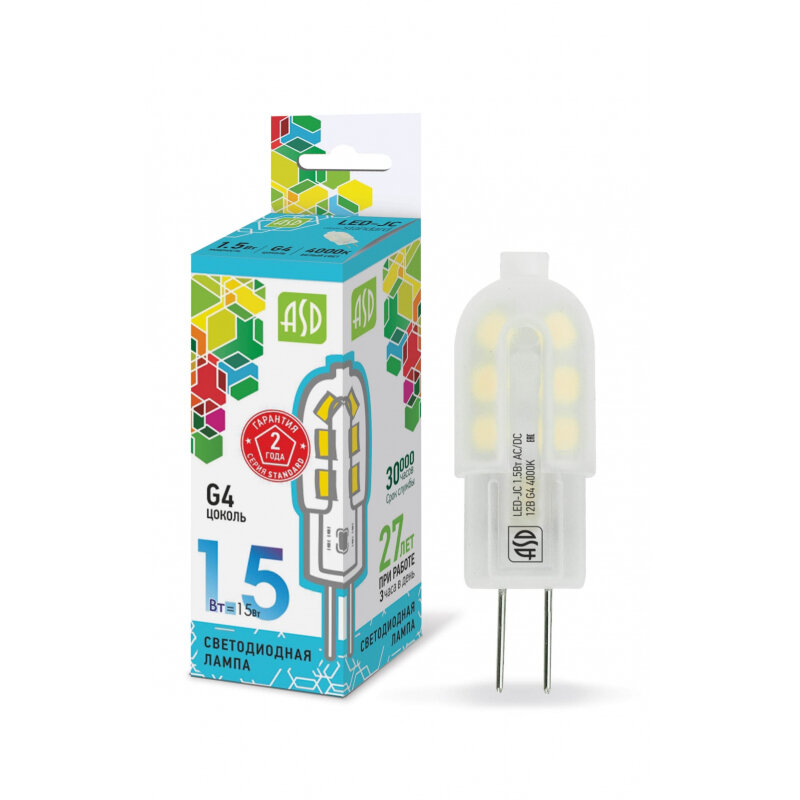 Светодиодная лампа ASD LED-JC-std 1.5Вт, 12В, G4, 4000К, 135Лм 4690612003290 интересное: