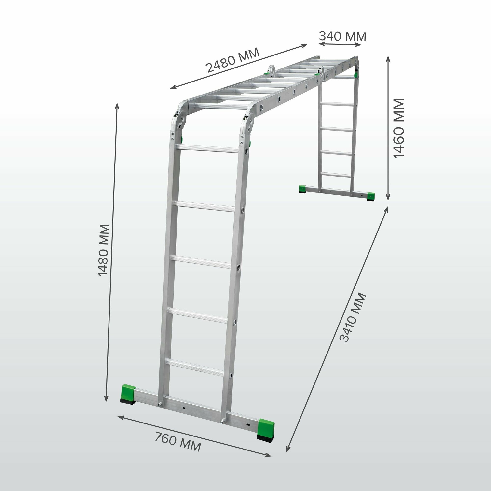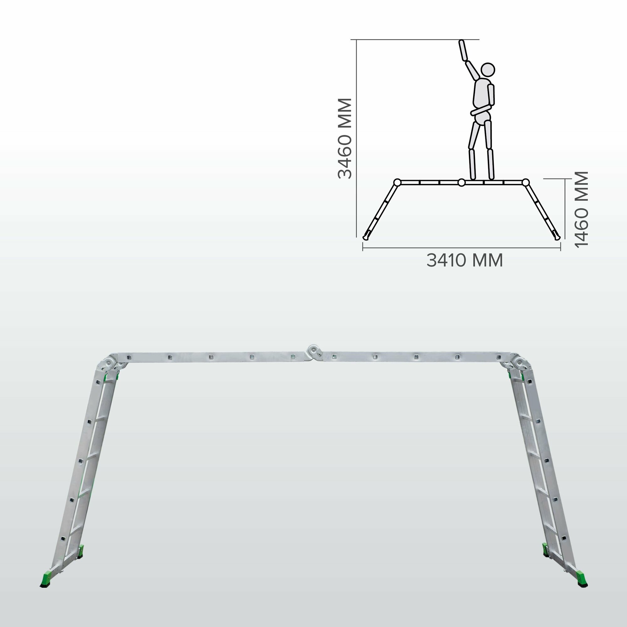 Новая высота Лестница-трансформер 3-х секционная 3×7 ступеней, 3×1,9 м, высота 4,5 м, нагрузка 150 кг, алюминий, новая высота