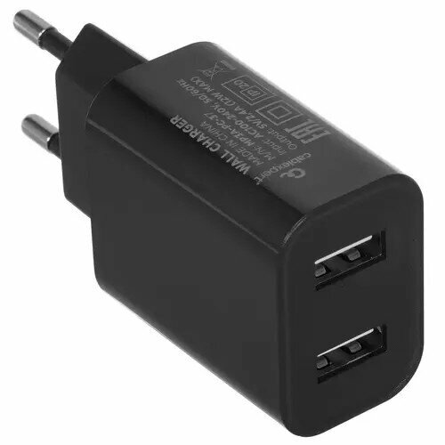 Сетевое з/у + DАТА кабель Cablexpert MP3A-PC-37 USB 2 порта 2.4A черный + кабель 1м Type-C