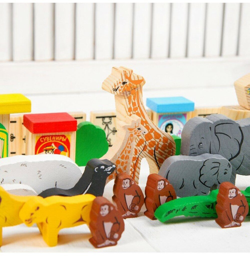 Конструктор "Зоопарк" (39 деталей), Томик. фигурки животных из дерева