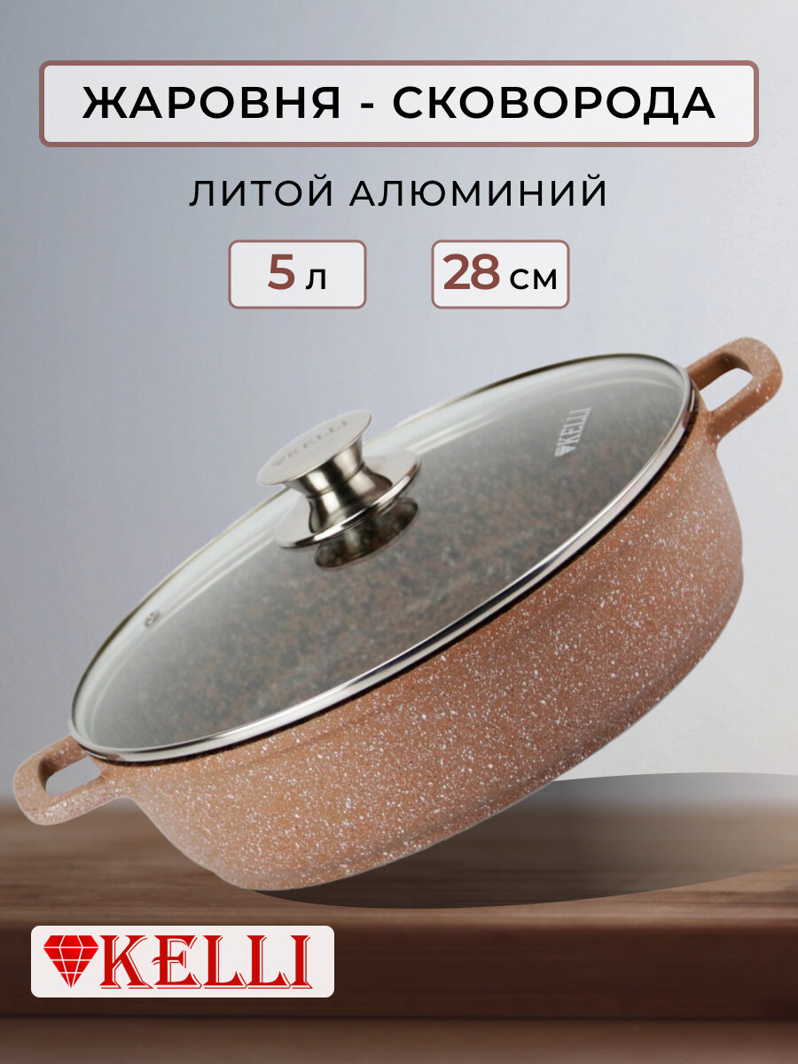 Сковорода-сотейник Kelli KL-4019-28 из алюминия с гранитным покрытием, 5 л
