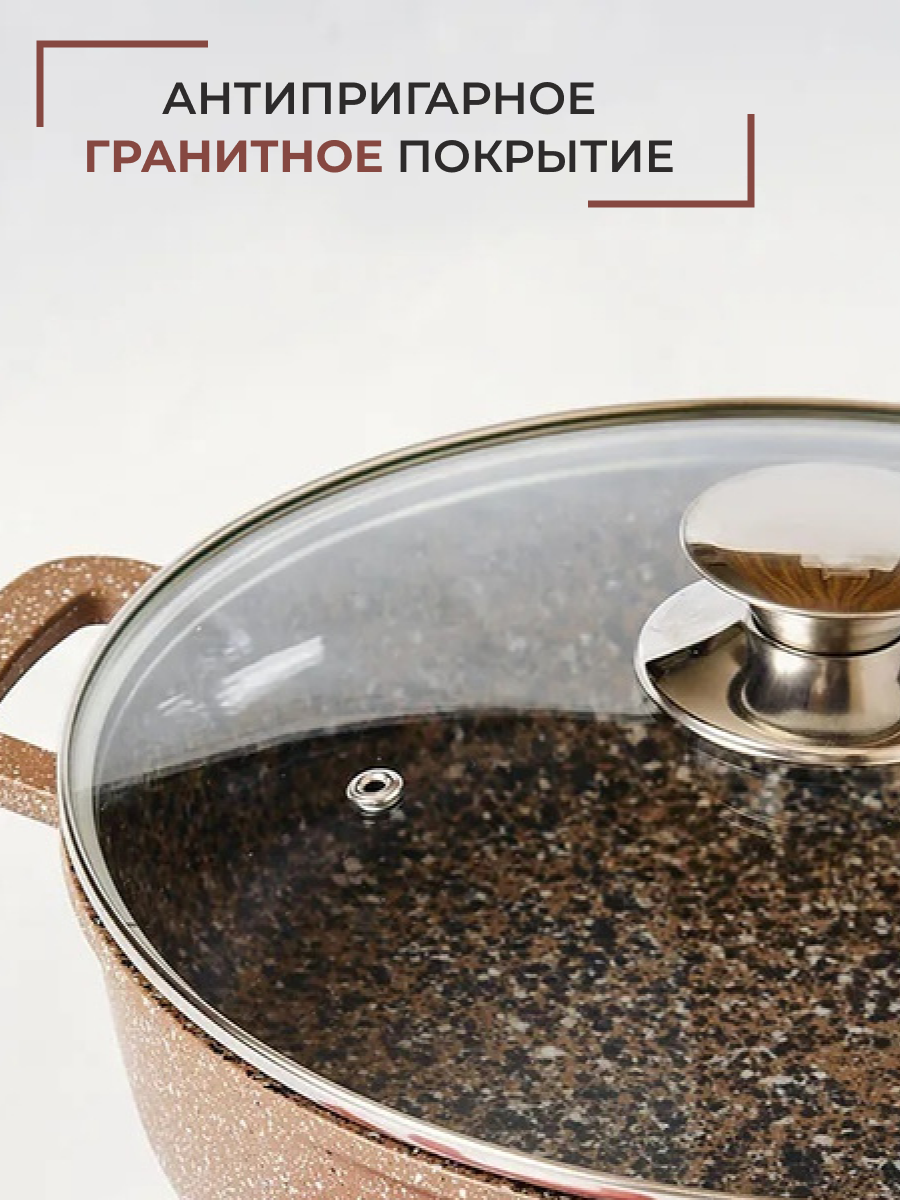 Сотейник, сотейник с крышкой 26 см, сотейник для индукционных и других плит, гранитное антипригарное покрытие, крышка в комплекте