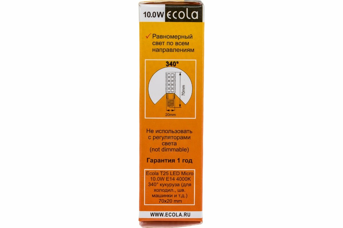 Ниже Вы можете прочитать отзывы на Ecola T25 LED Micro 10.0W E14 4000K 340 кукуруза 65x18 mm B4TV10ELC, ознакомится с подробными характеристиками, посмотреть интересные обзоры и фотографии на Ecola T25 LED Micro 10.0W E14 4000K 340 кукуруза 65x18 mm B4TV10ELC.