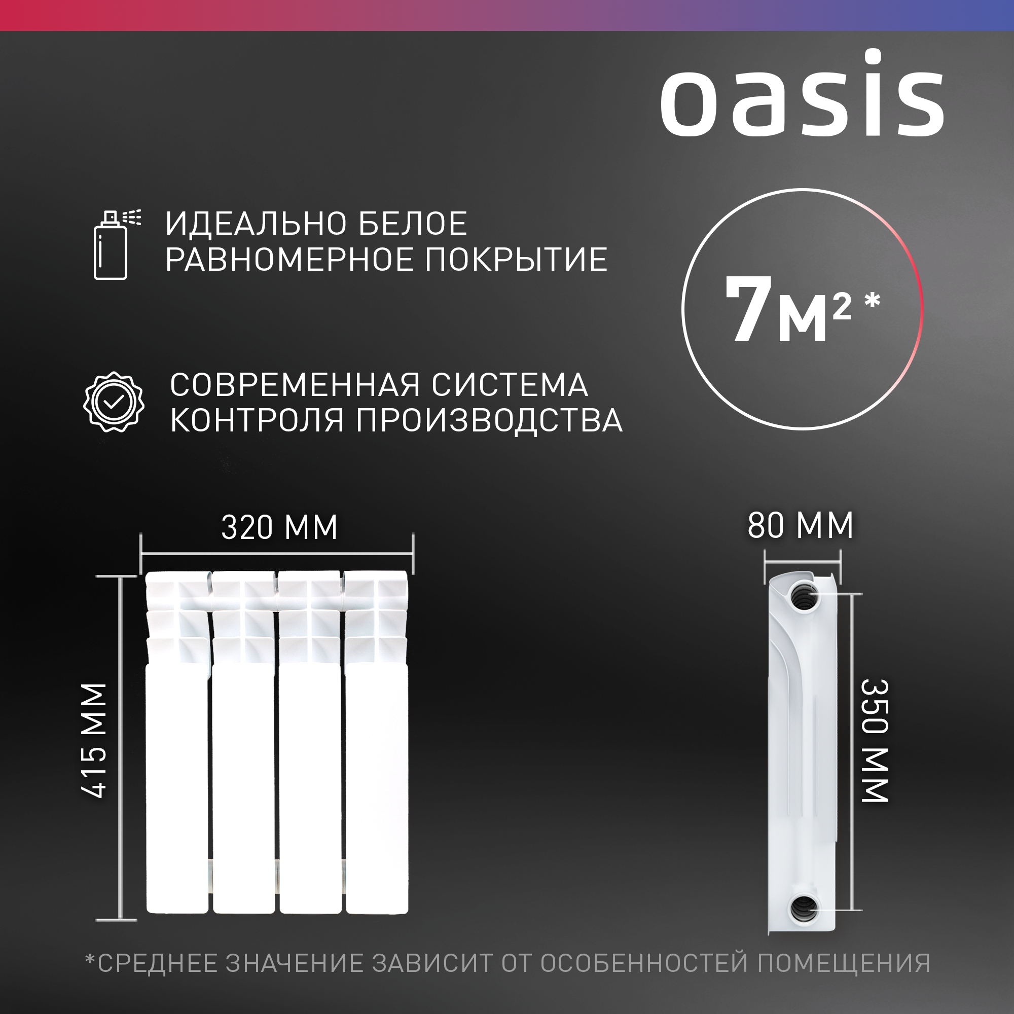 Биметаллический радиатор Oasis ECO 500/80 7 секций, 1064 Вт, Россия