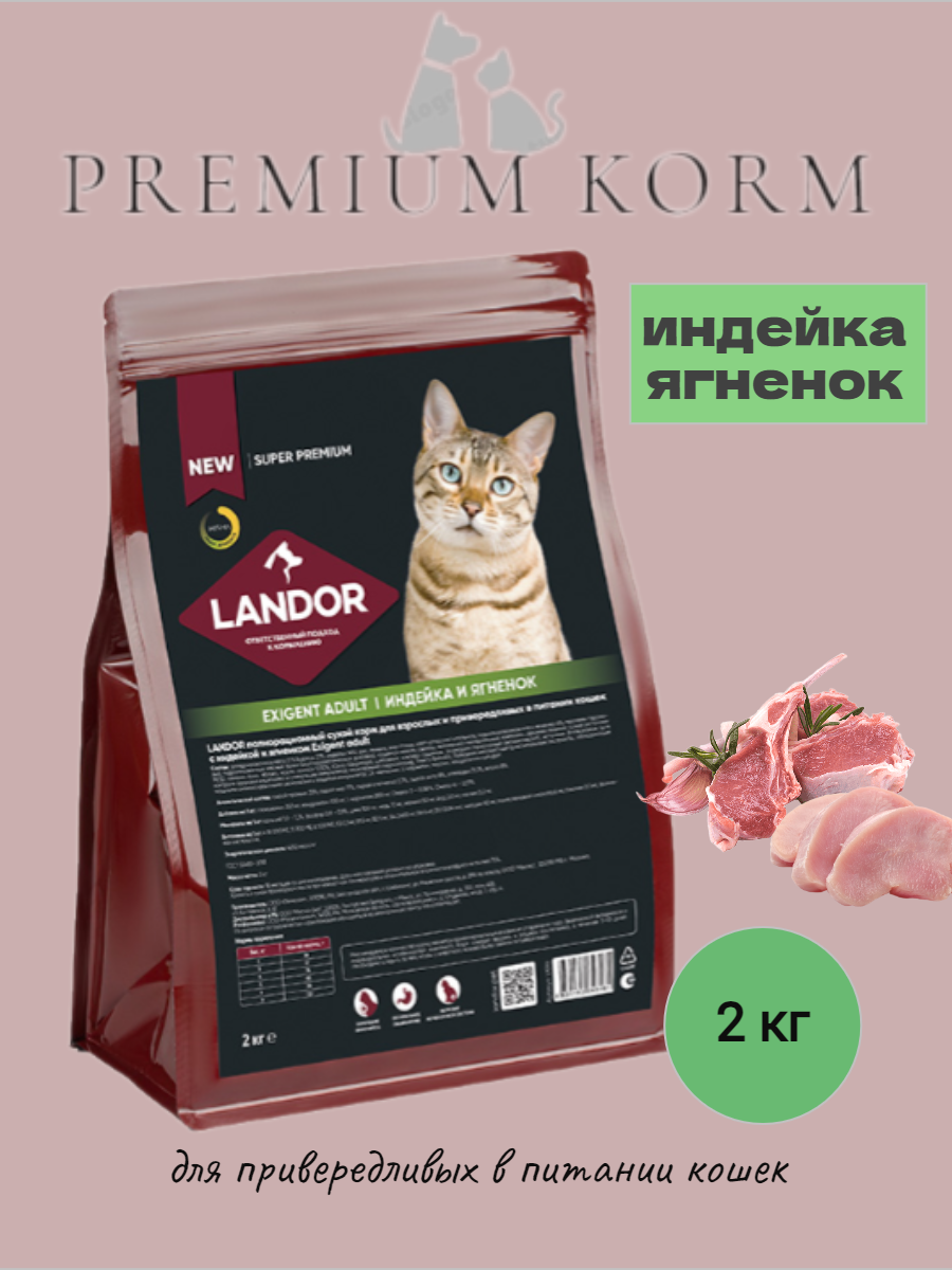 Landor Cat Exigent Adult сухой корм для кошек привередливых к еде Индейка и ягненок, 2 кг. интересное: