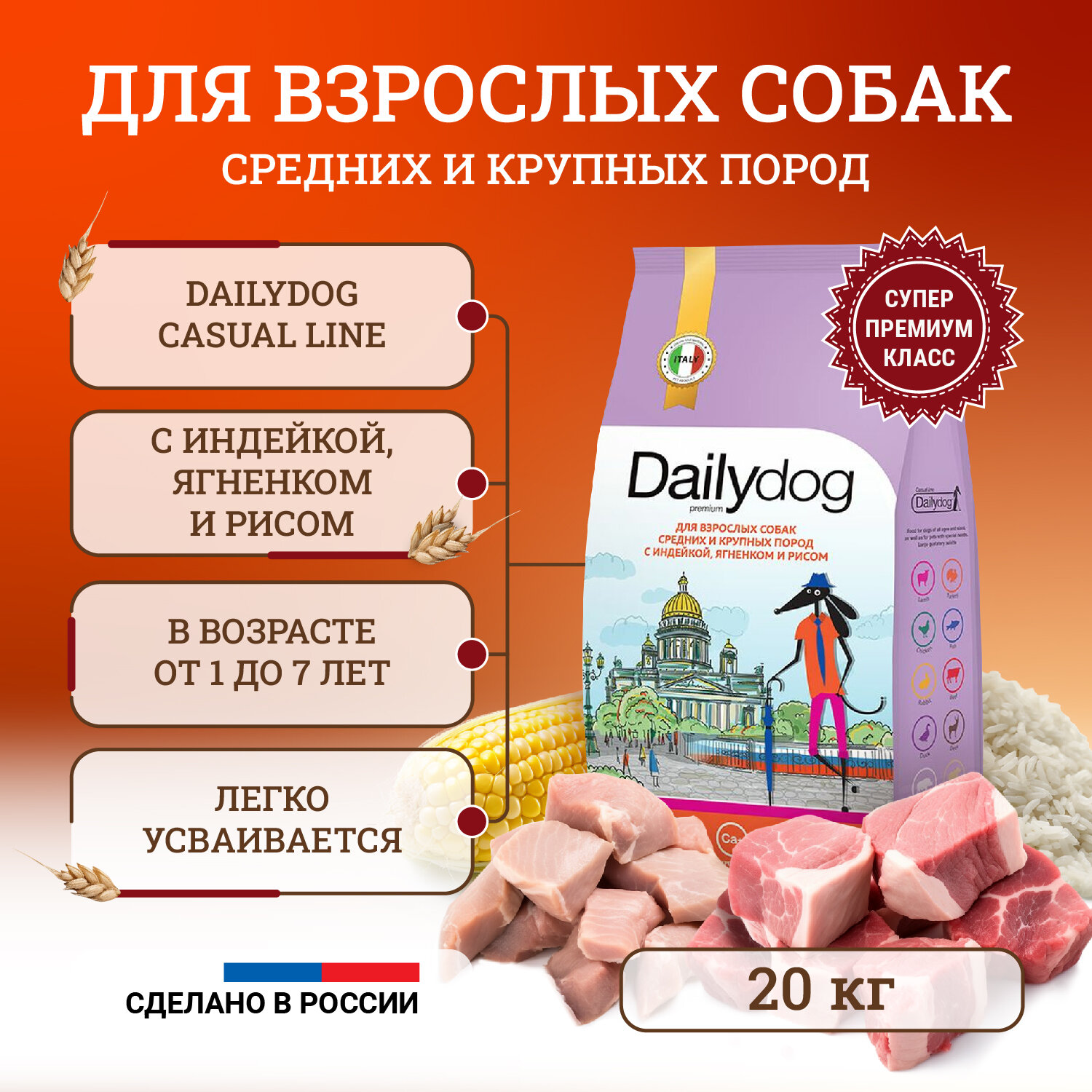 Сухой корм Dailydog для собак средних и крупных пород, с индейкой, ягненком и рисом, 20 кг