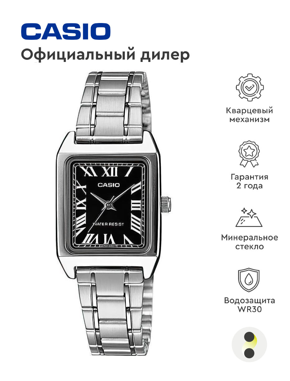 Наручные часы CASIO Collection Casio Женские наручные часы Casio LTP-V007L-1B, серебряный, черный