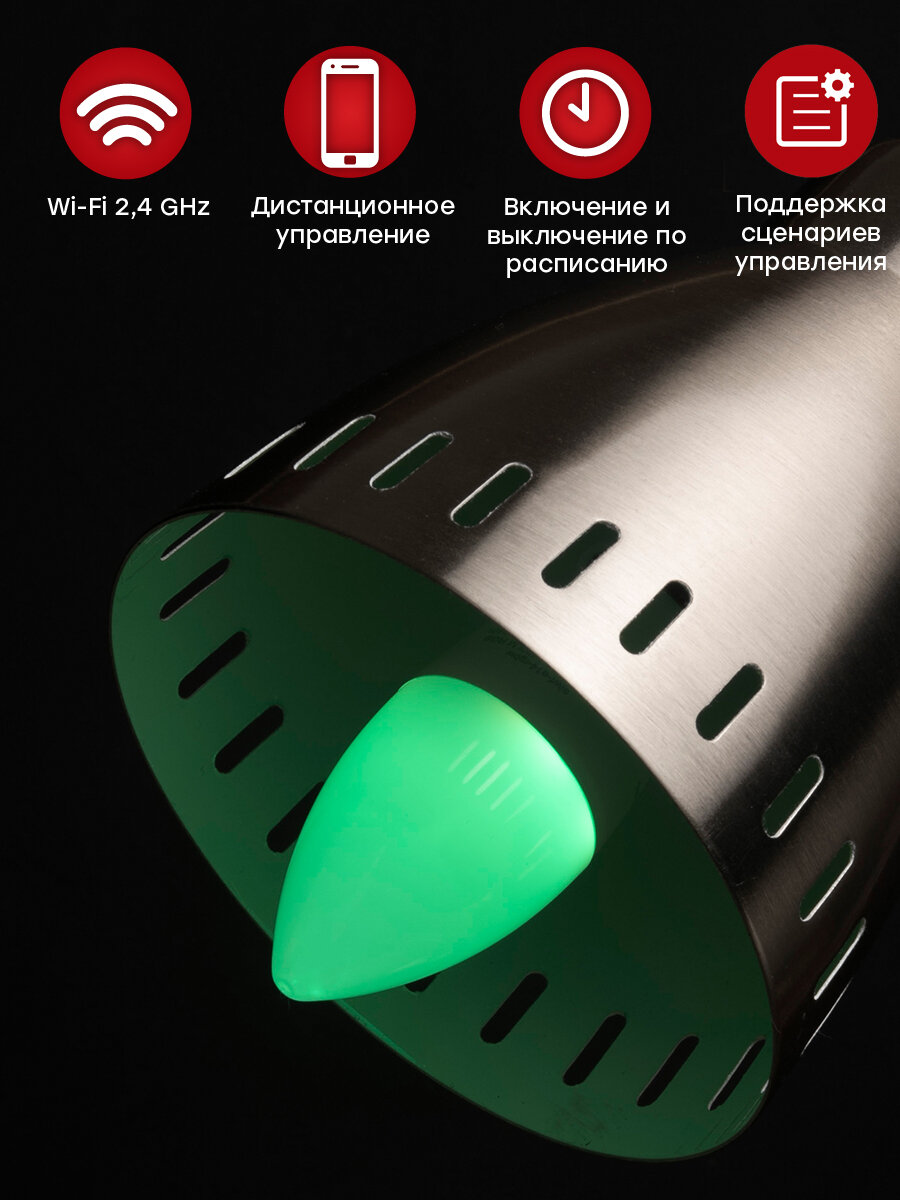 | Минусы: | При покупке что-то не указано, что она будет работать только при 2.7 ГГЦ. То есть при наших 5 ни о каком конекте речи не идёт. Так что мы купили обычную лампочку за 500 рублей. |