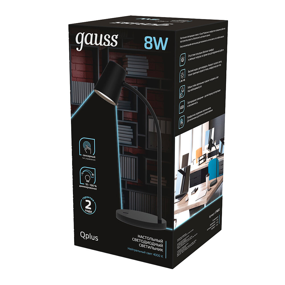 Светильник настольный Gauss Qplus модель GTL603 8W 600lm 4000K 170-265V черный диммируемый LED 1/8