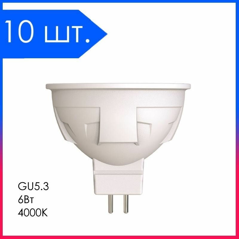 10 шт. Светодиодная лампа LED Лампочка GU5.3 MR16 6Вт 4000К D50х55мм Матовая колба 500Лм интересное:
