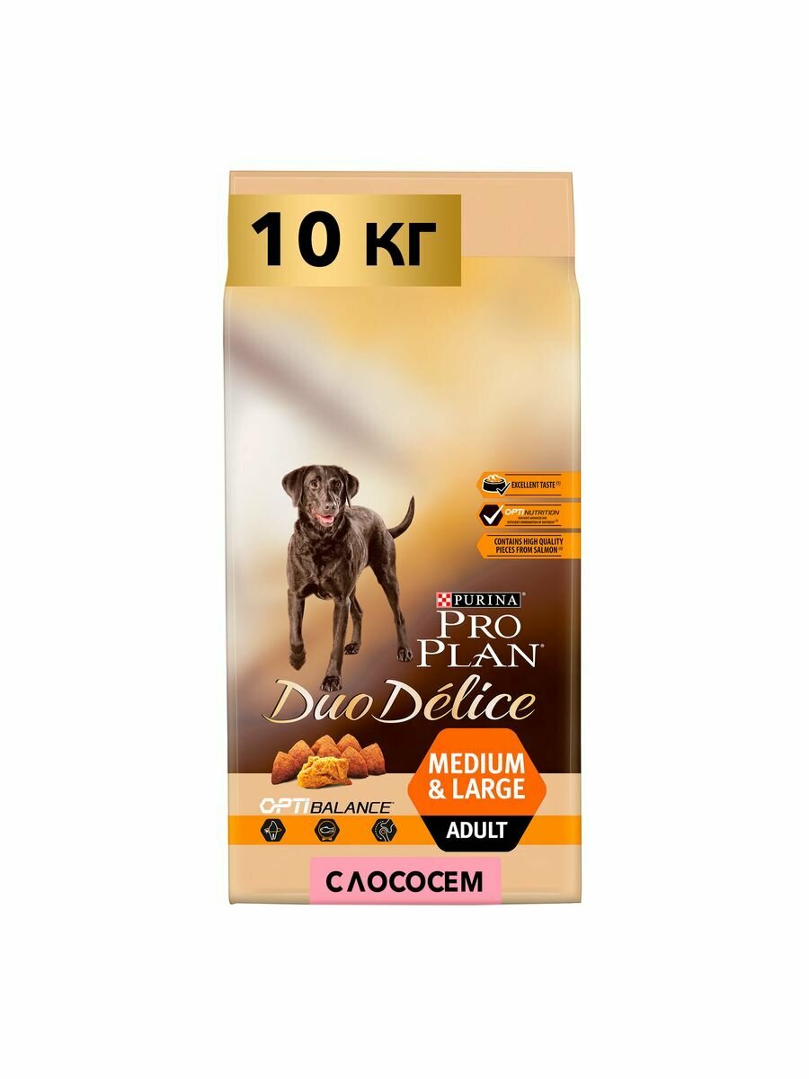 PRO PLAN DUO DELICE 10 кг сухой корм для взрослых собак средних и крупных пород, с высоким содержанием лосося 1 шт
