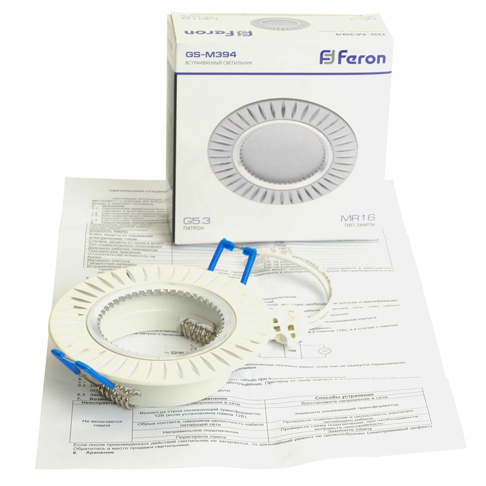 Светильник встраиваемый GS-M394 потолочный MR16 G5.3 белый, FERON 28342 (1 шт.)