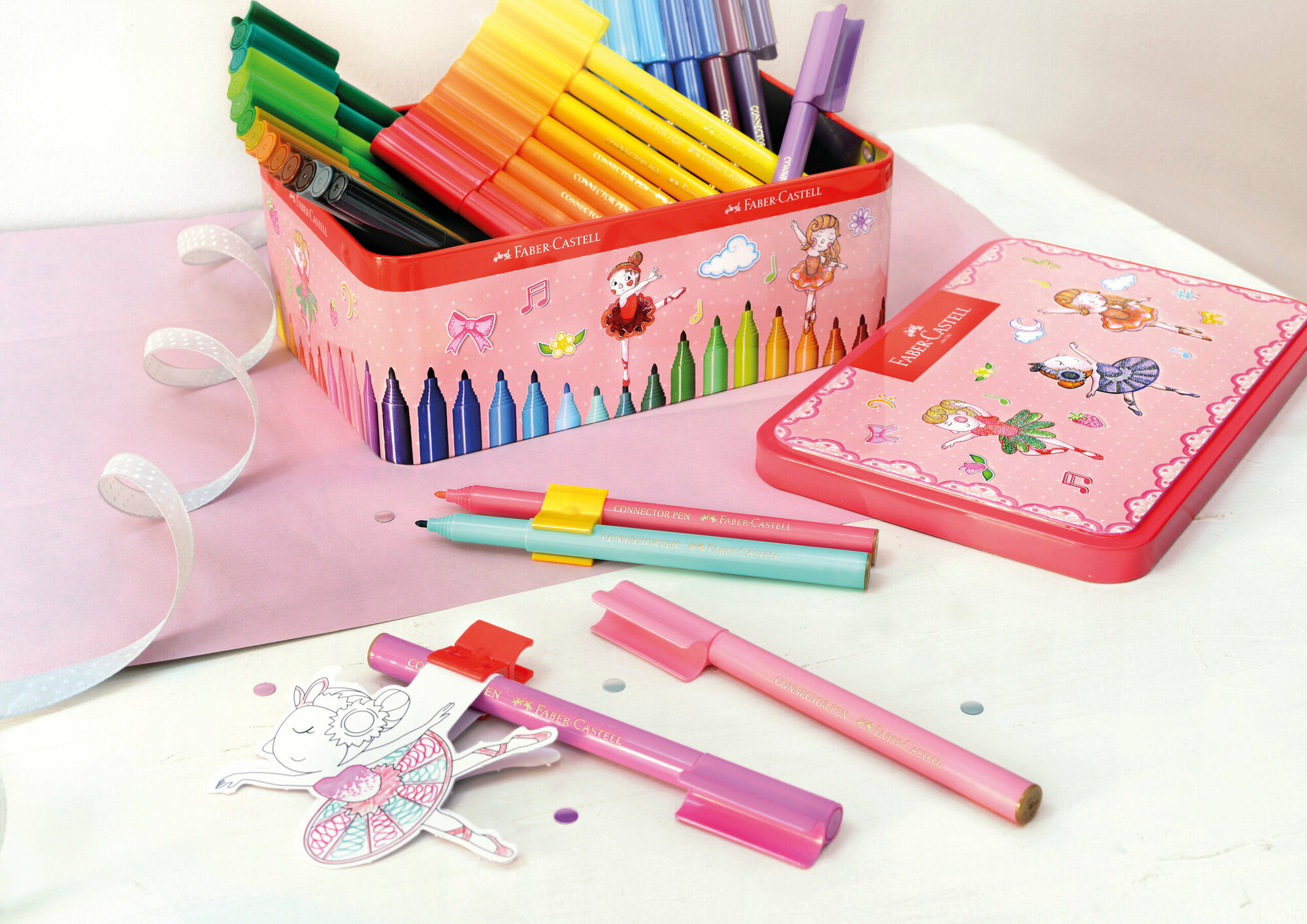 Набор для рисования Faber-Castell "Connector Ballerina" 33 фломастера+10 клипс+2 карты для раскраш.