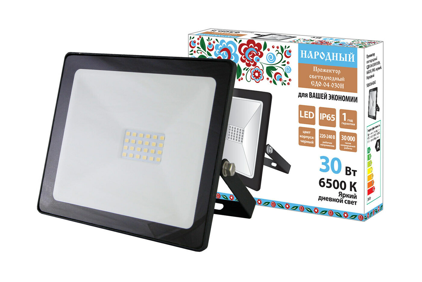 Прожектор светодиодный Народный СДО-04-030Н, 30 Вт, 6500 К, IP65, черный