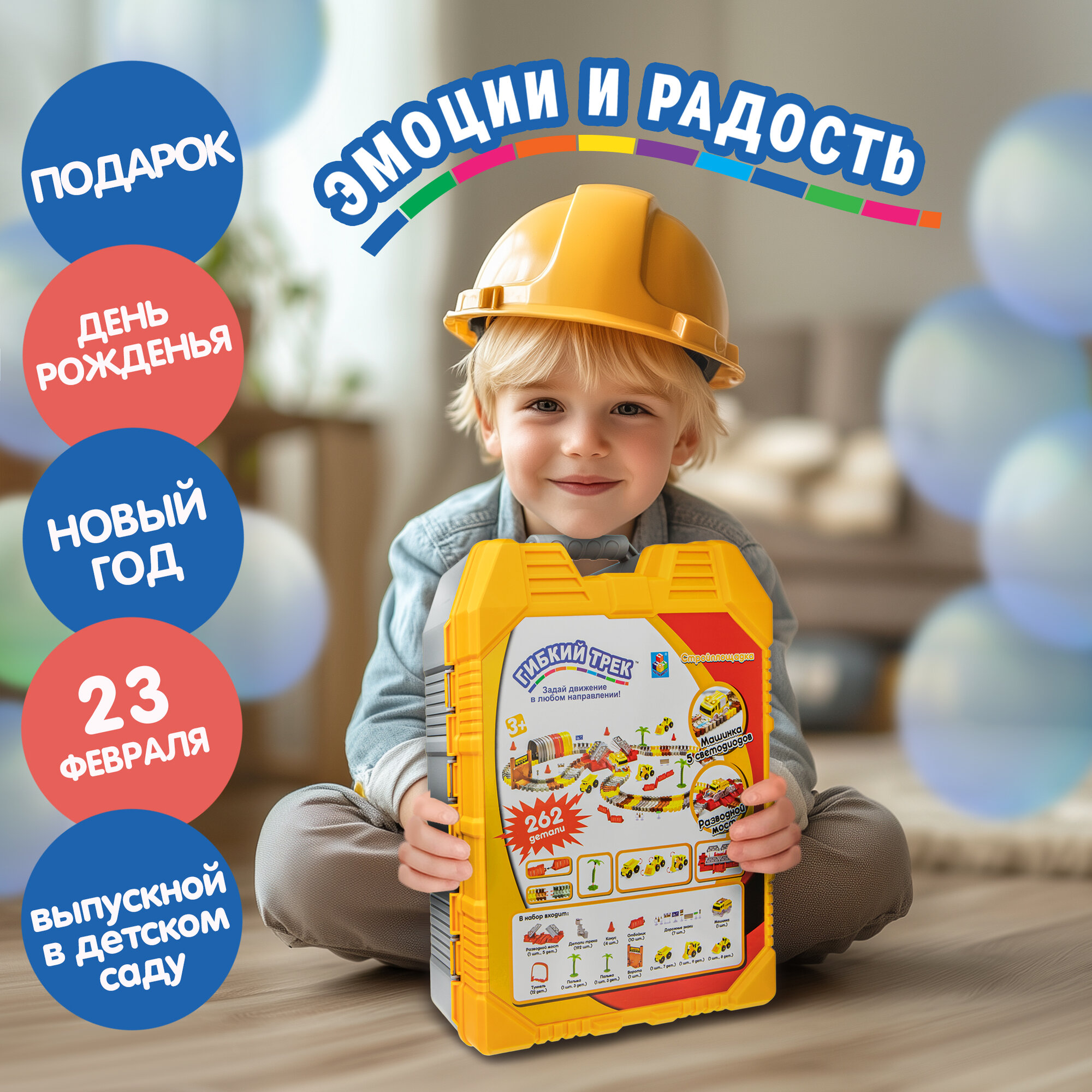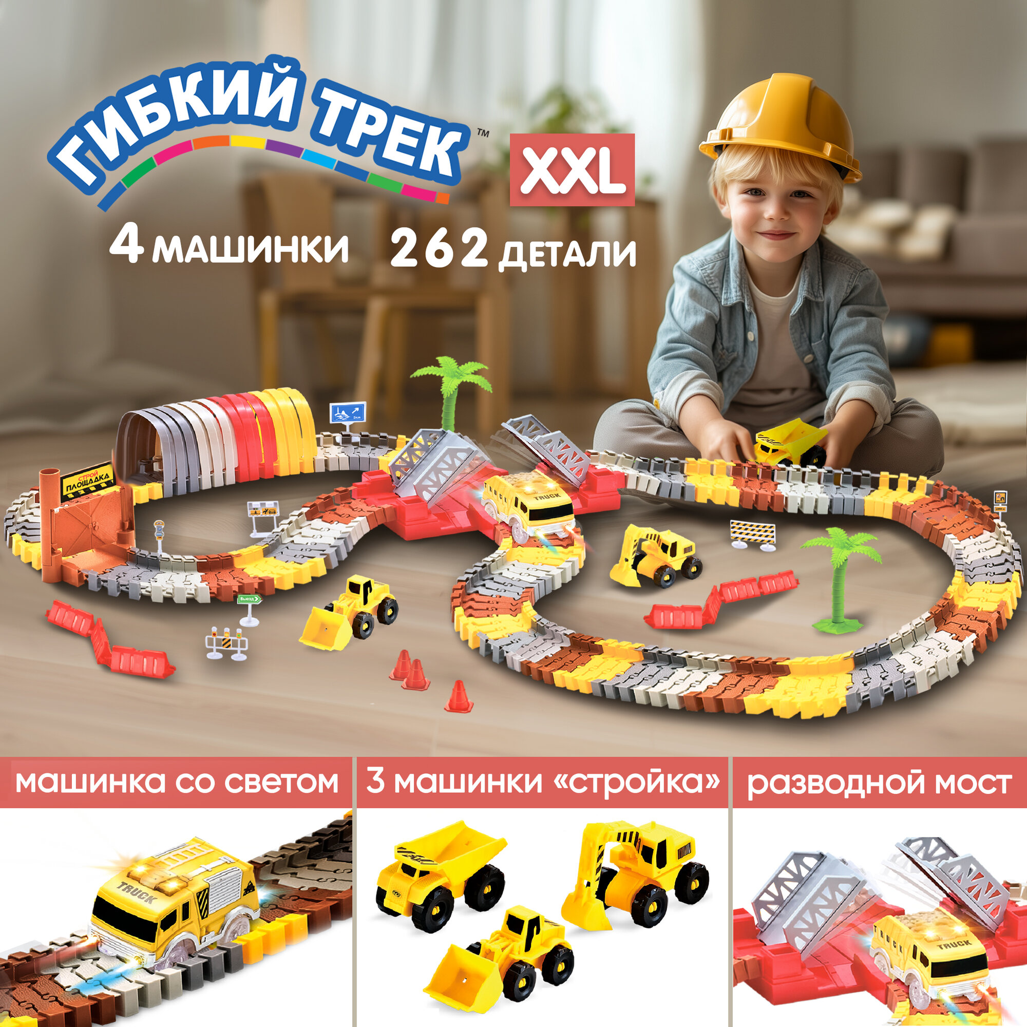Гибкий трек 1TOY Стройплощадка 262 детали Т20868 интересное: