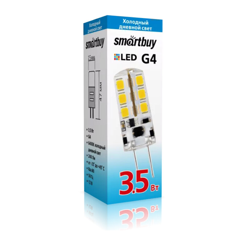 Smartbuy G4 12V 3.5W (240lm) 6000K 6K 240° 15x15x47мм SBL-G4 3_5-64K