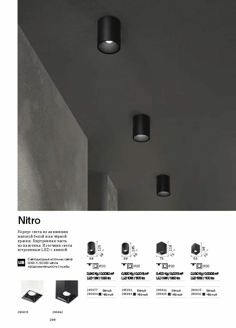 Светильник потолочный ideal lux Nitro PL 10Вт 1100Лм 3000К IP20 LED 230В Белый Алюминий 205991.