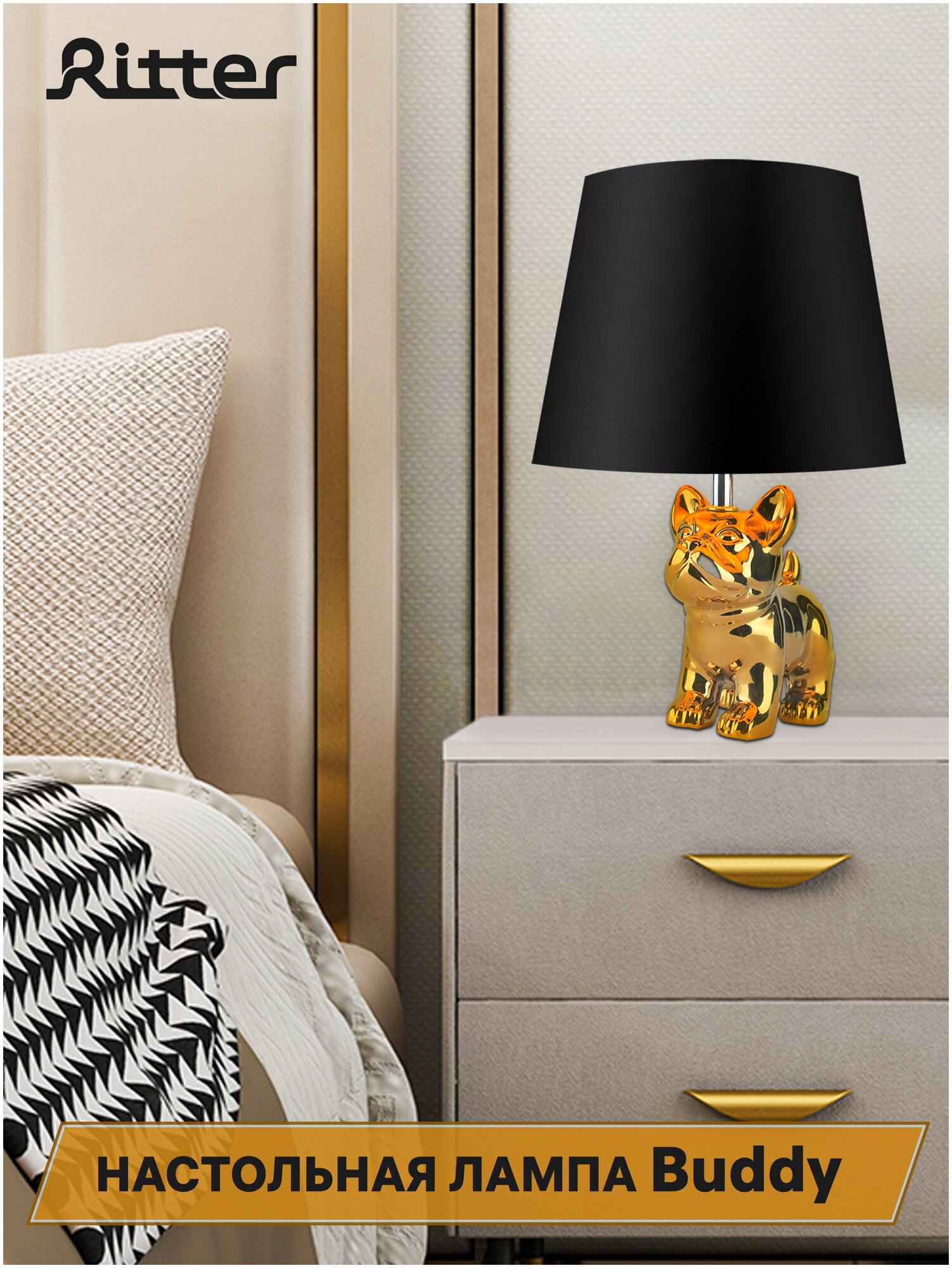 Настольная лампа Ritter Buddy с абажуром, 1xE14 40Вт, провод 1,6 м, черный/золотой