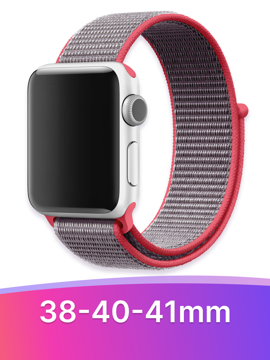 СохранитьНейлоновый ремешок для часов Apple Watch 38-40-41 mm, Series 1-9, SE / Тканевый фитнес браслет на липучке Эпл Вотч 38-40-41 мм (Розово-фиолетовый) интересное: