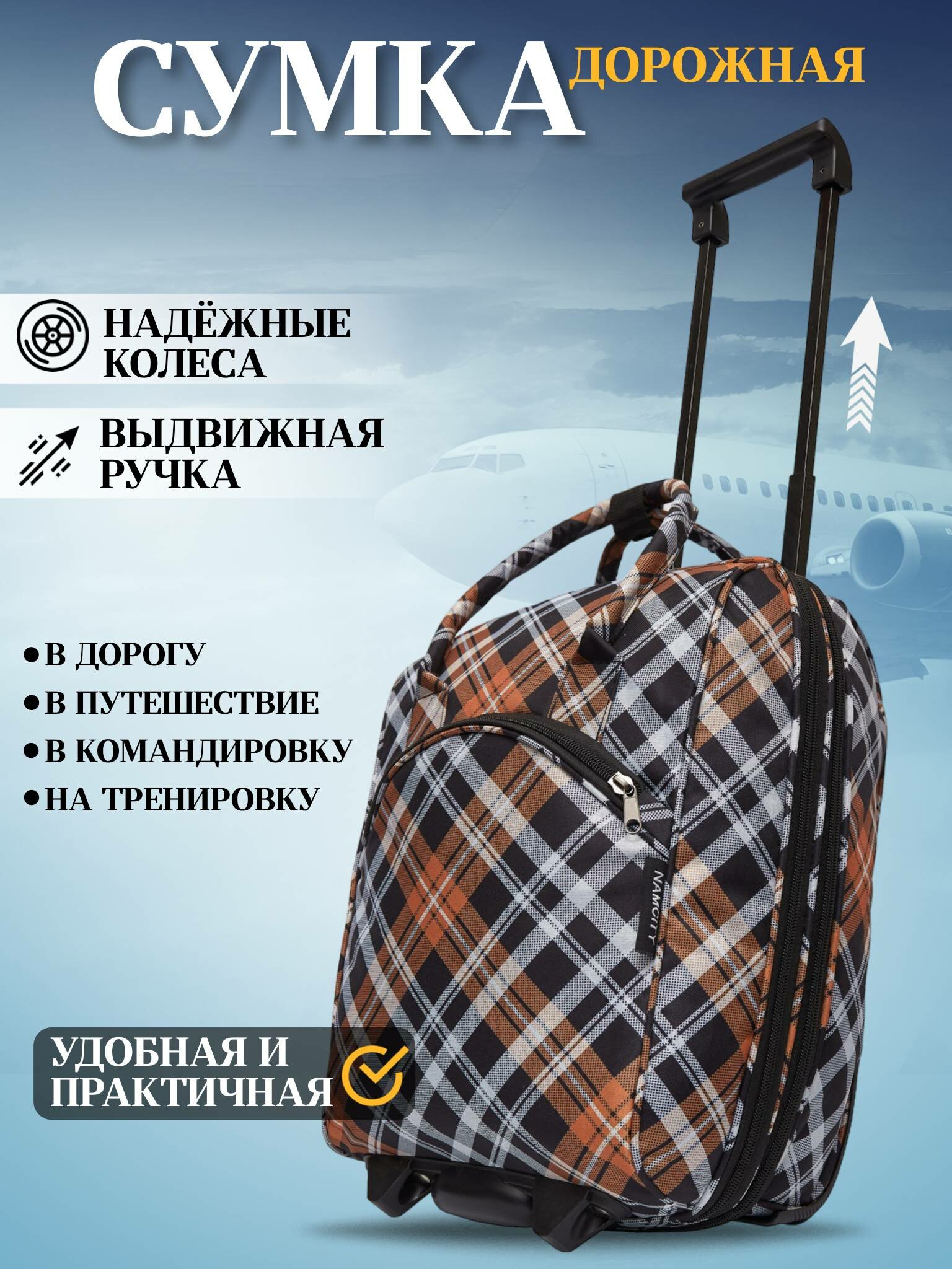 Сумка на колесах дорожная маленькая с выдвижной ручкой/ размер S, колеса на подшипниках, тканевая с увеличением, вместительная и прочная "NAM CITY"3