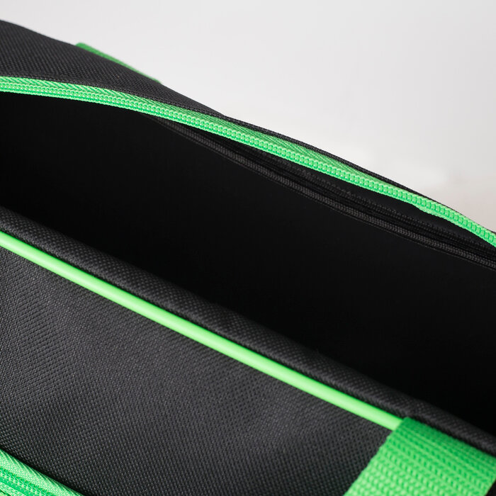Сумка спортивная на молнии, без подкладки, наружный карман, цвет чёрный/зелёный