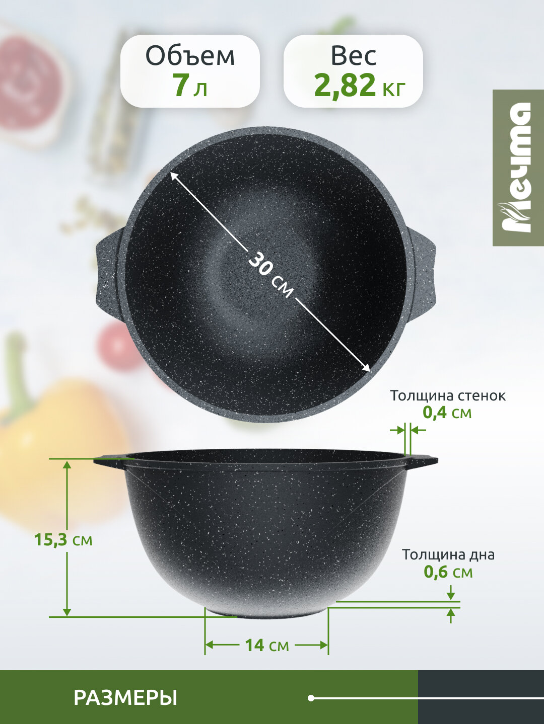 Мечта 57701 Гранит, Казан для плова 7 л