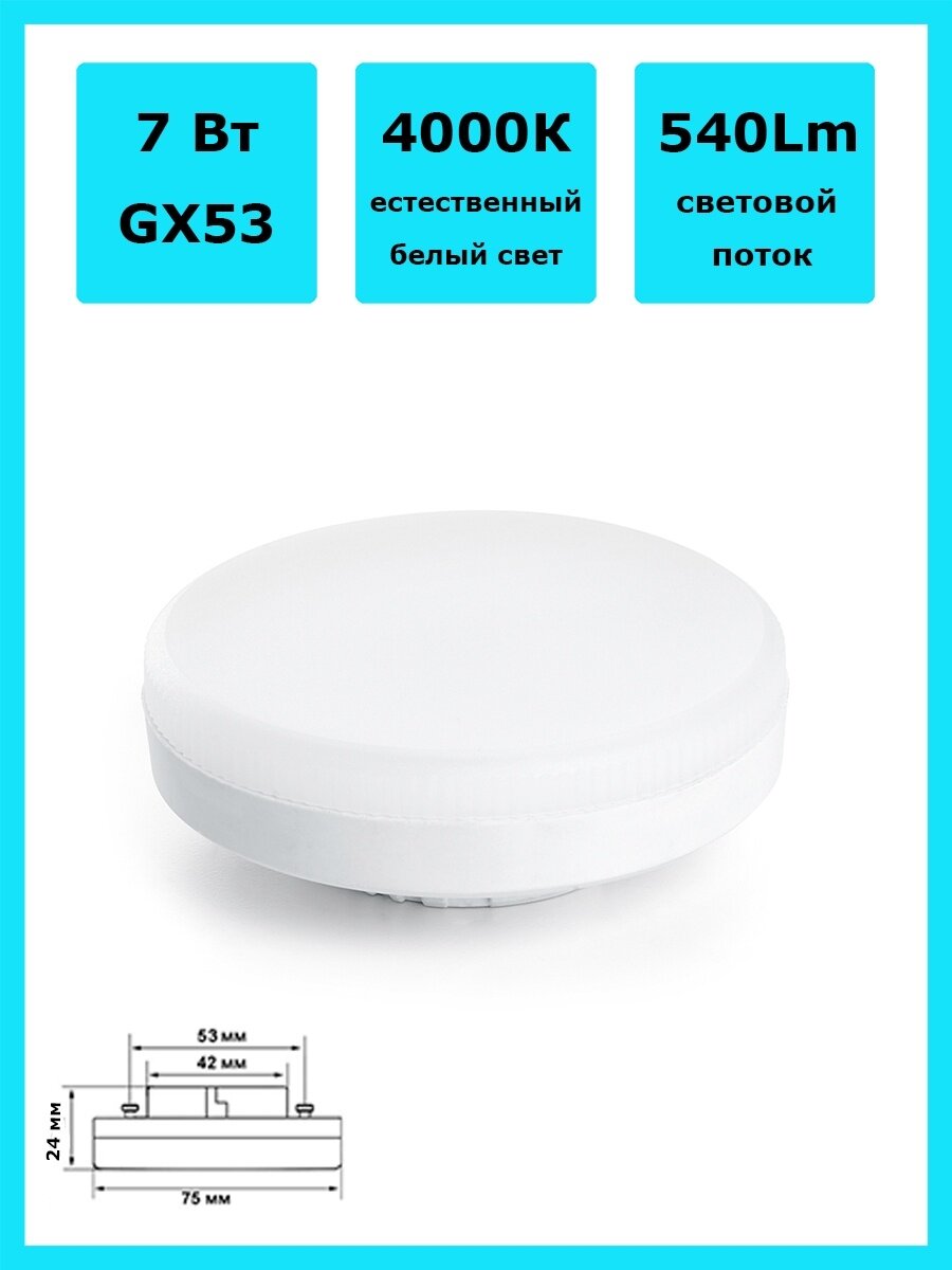 Лампа cветодиодная, (7W) 230V GX53 4000K, LB-451 арт. 25828