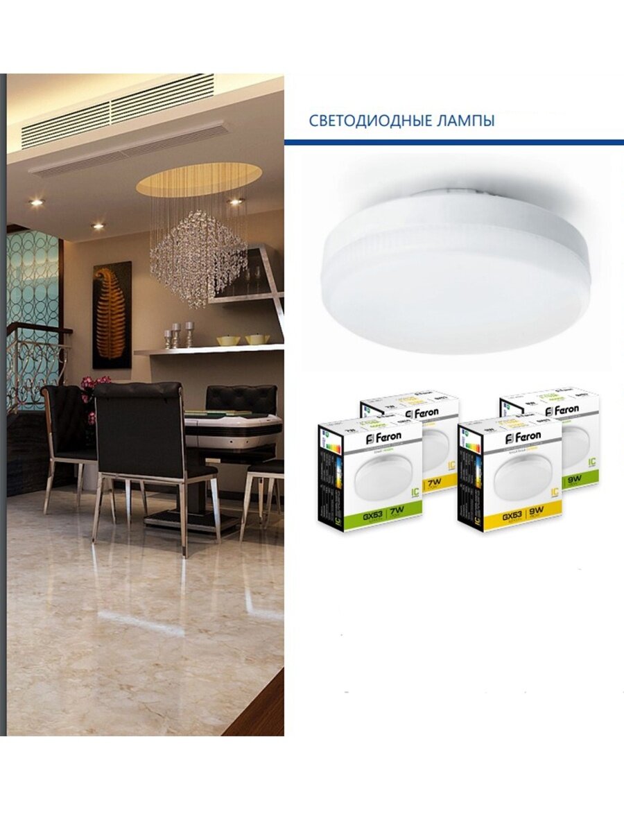 СохранитьЛампа светодиодная LED 7вт GX53 белый таблетка 25828 FERON интересное: