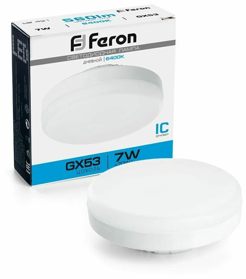 Лампа светодиодная LB-451 GX53 7W 6400K, FERON 25866 (1 шт.)