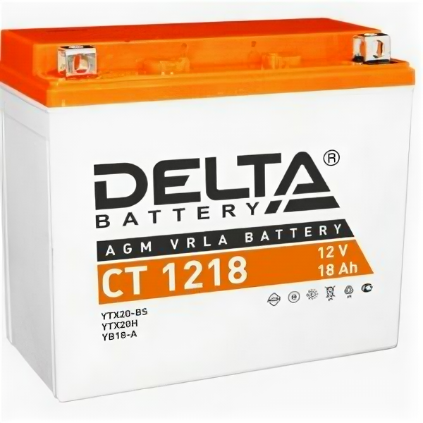 Delta CT 1218 Мото аккумулятор стартерный для мотоцикла, квадроцикла, скутера AGM 12V (YTX20-BS, YTX20H, YB16-B-CX, YB16-B, YB18-A)