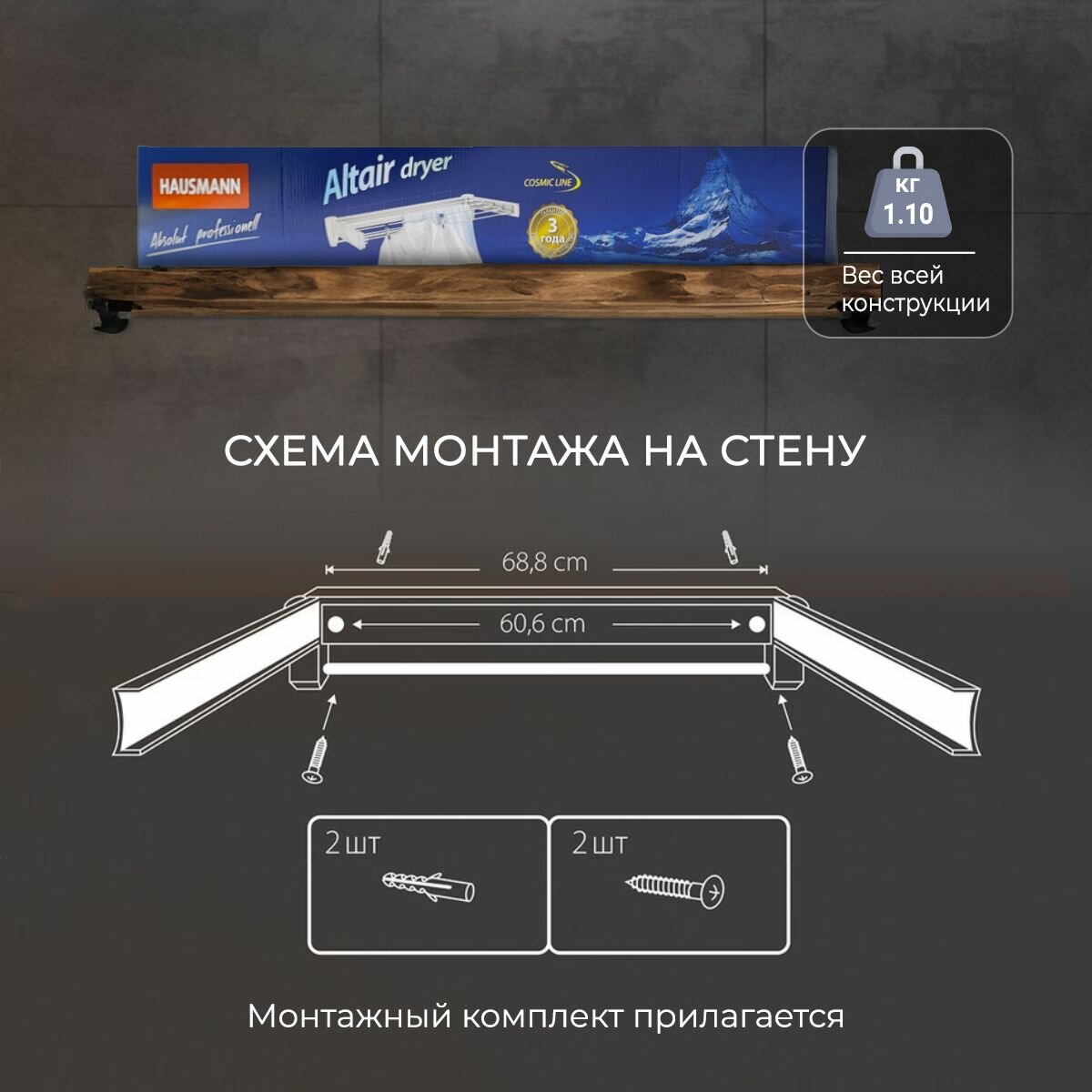 Сушилка для белья Hausmann Altair 70 настенная интересное: