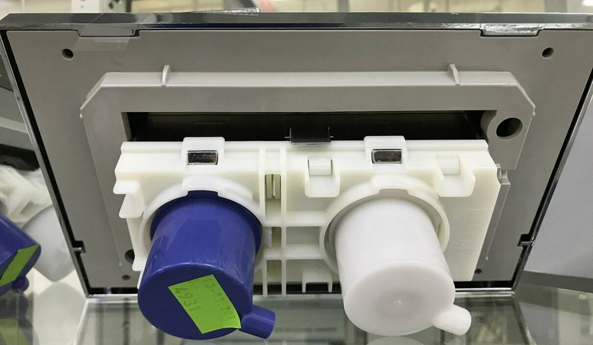 Кнопка смыва пневматическая двойная Oli Karisma, пластик, хром глянец, soft-touch черный 641019