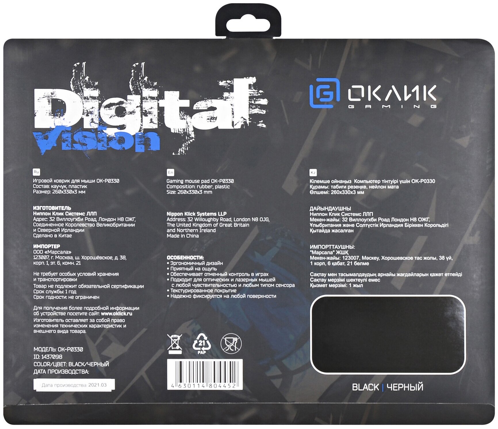 Коврик для мыши Oklick OK-P0330, 330x260x3мм, чёрный интересное: