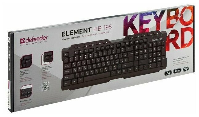 Defender Element HB-195 Defender Беспроводная клавиатура Element HB-195 RU, черный, мультимедиа 45195