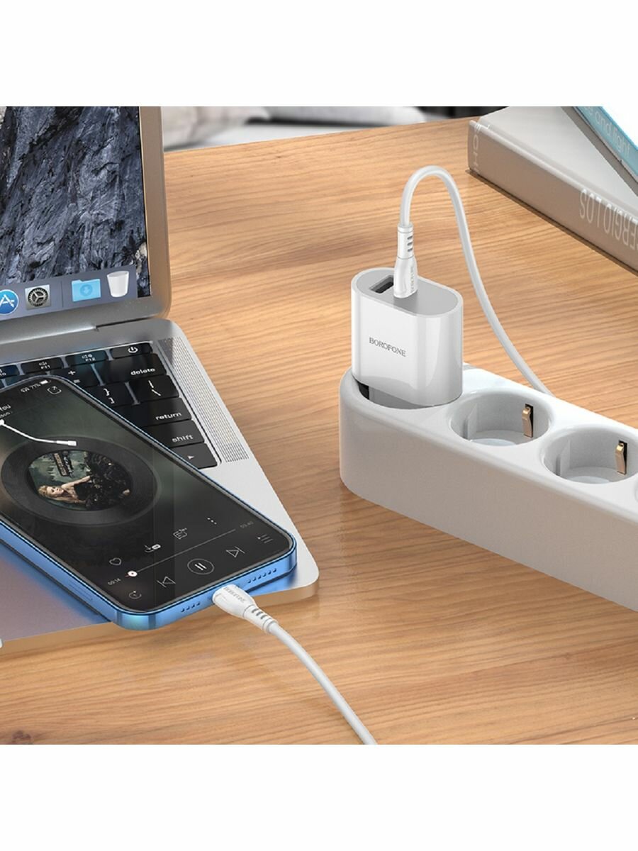 Зарядное устройство Borofone BA62A Wiseacre 1xUSB + USB-C + кабель Lightning White 6974443383041