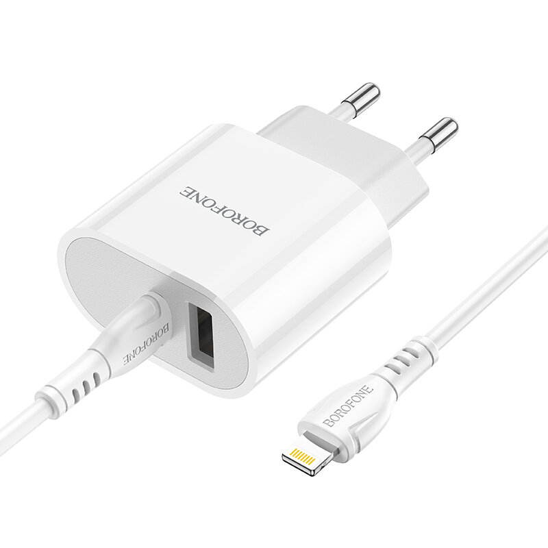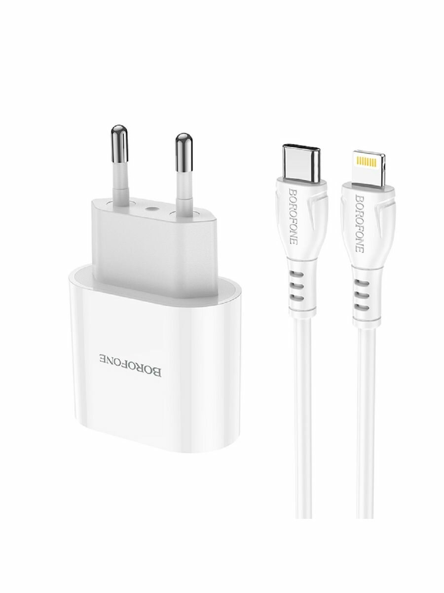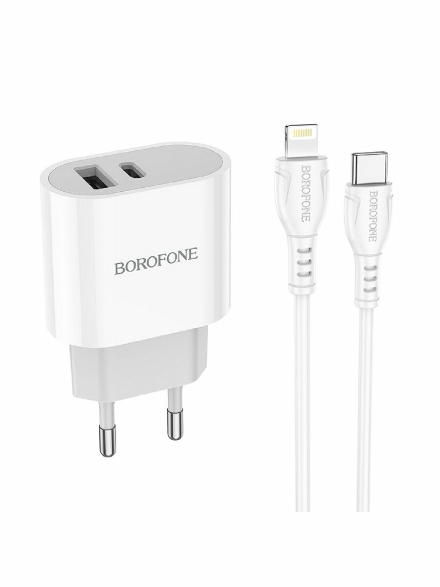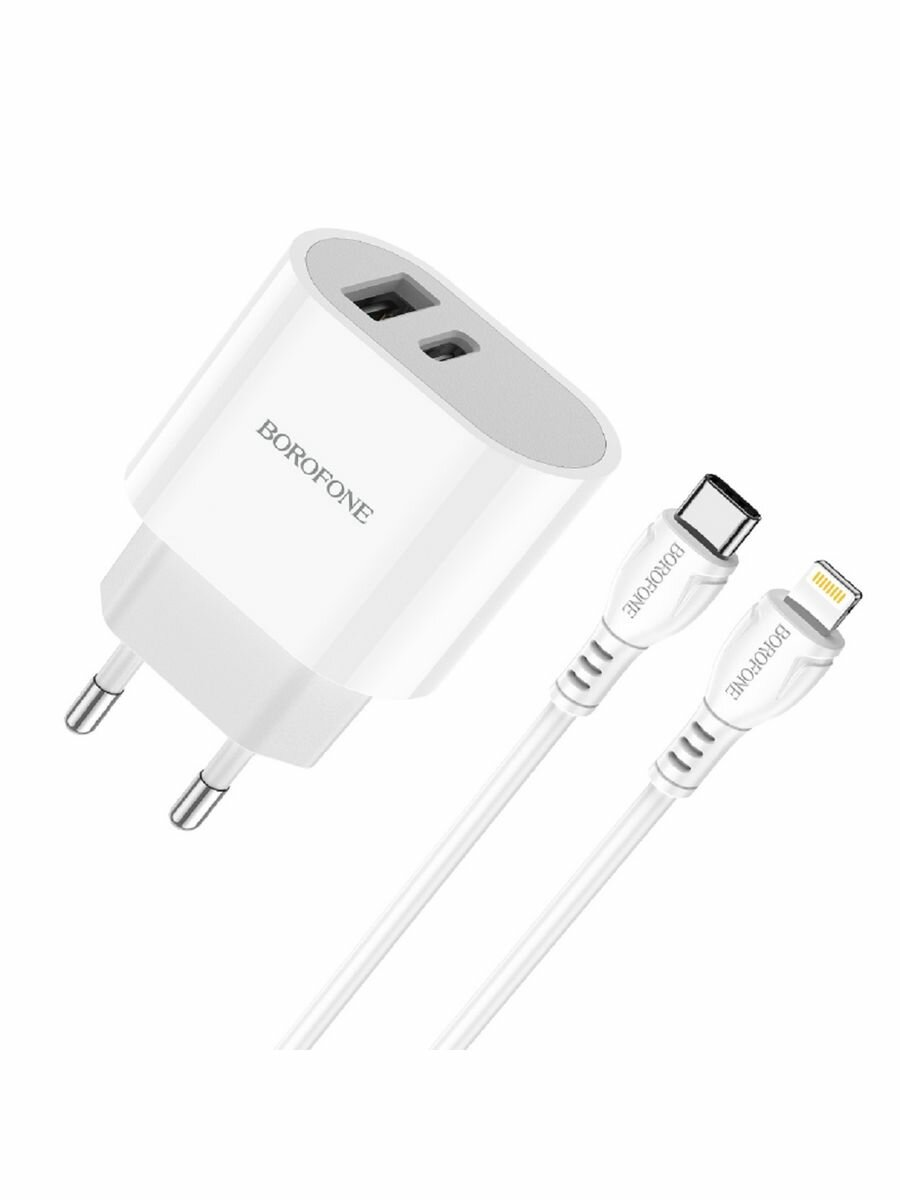 Сетевое зарядное устройство BOROFONE BA62A Wiseacre 1xUSB + USB-C + кабель USB-C Lightning 8 pin, 1м, 2,4A (белый)