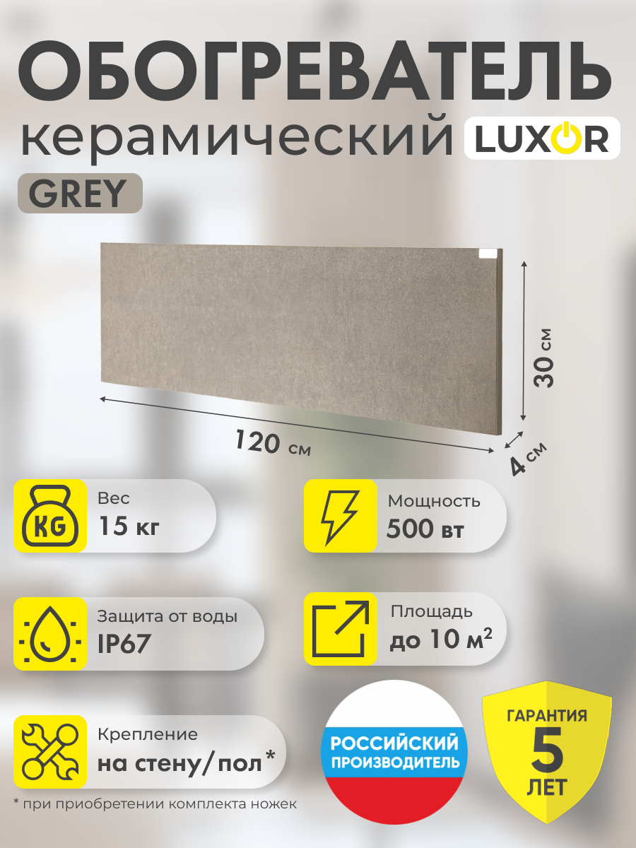 Обогреватель электрический инфракрасный керамический LUXOR W500L цвет серо-бежевый