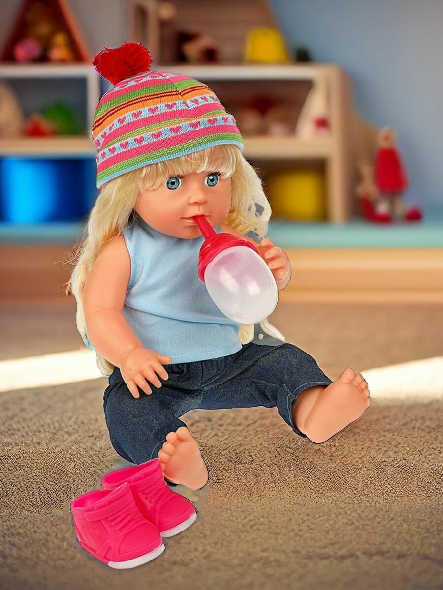 Кукла Карапуз функциональная, Шаинский музыка, Настенька 40 см, пьет, писает, 8 аксессуаров