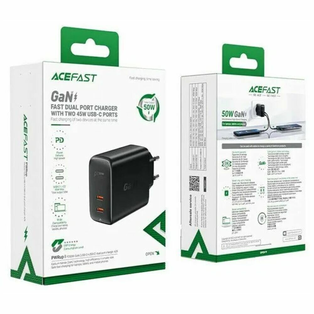 Сетевое зарядное устройство ACEFAST A29 PD50W GAN, USB-C + USB-C, Черный