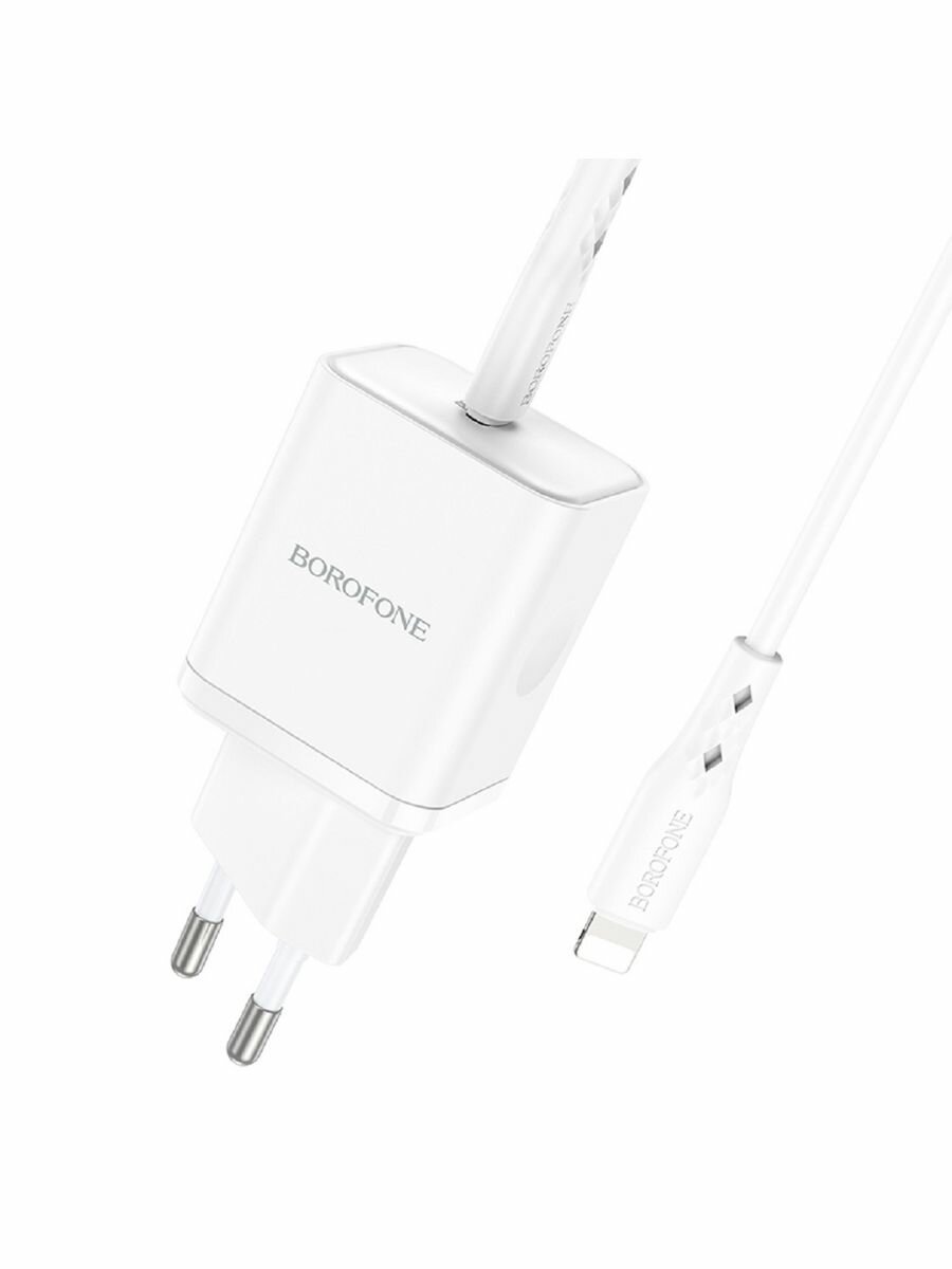 Купить Сетевое зарядное устройство (СЗУ) Borofone BN6 (Type-C) + кабель Type-C-Lightning, 3 А, белый