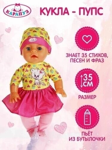 СохранитьПупс, Карапуз Кукла Сонечка Карапуз говорящий функциональный с аксессуарами 35 см интересное: