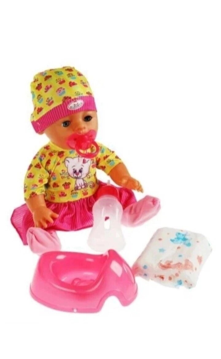 | Комплектация | батарейки, бутылочка, горшок, подгузник, пустышка |