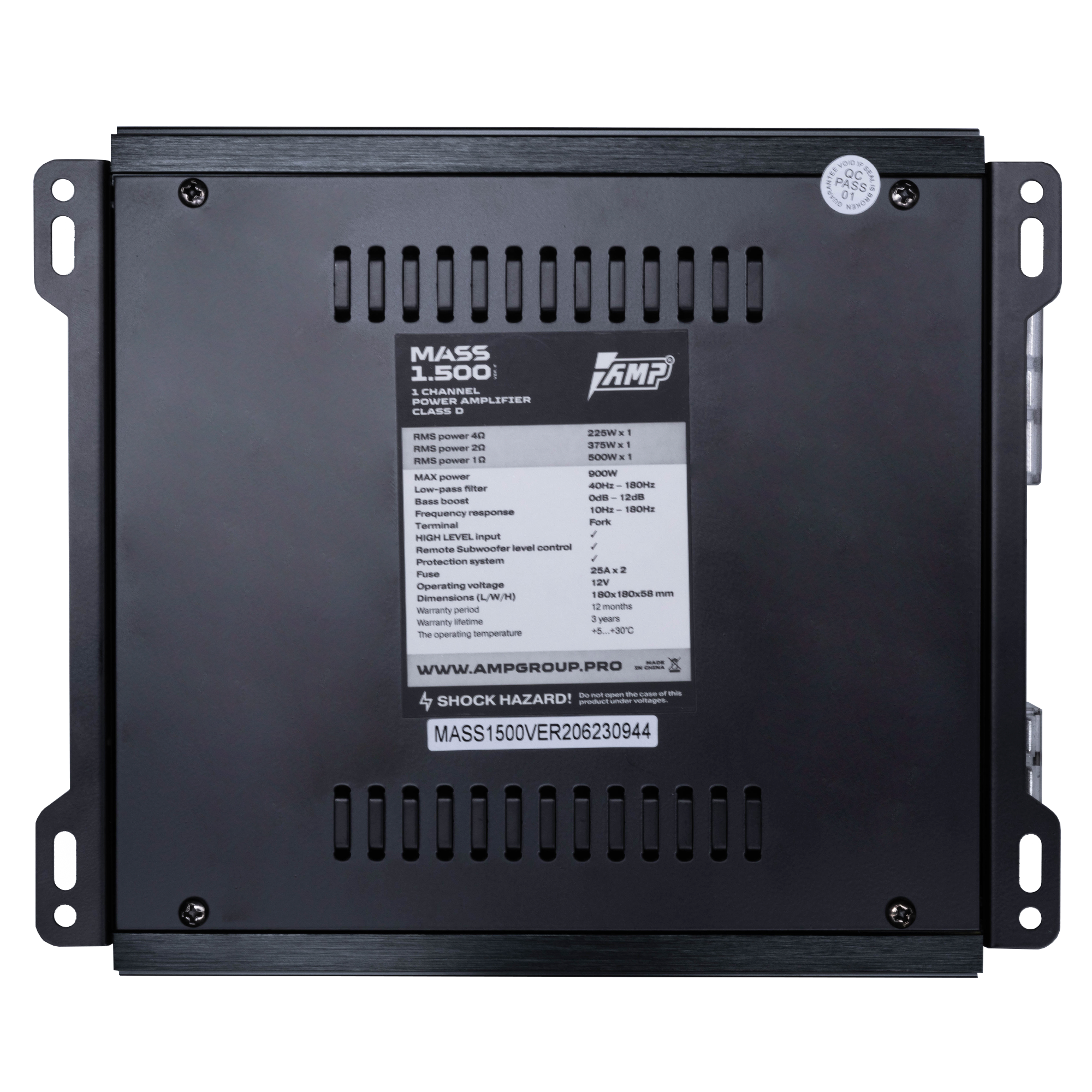 Усилитель автомобильный AMP MASS1.500 ver.2, 500 Вт х 1 (1 Ом), 900 Вт, Класс: D