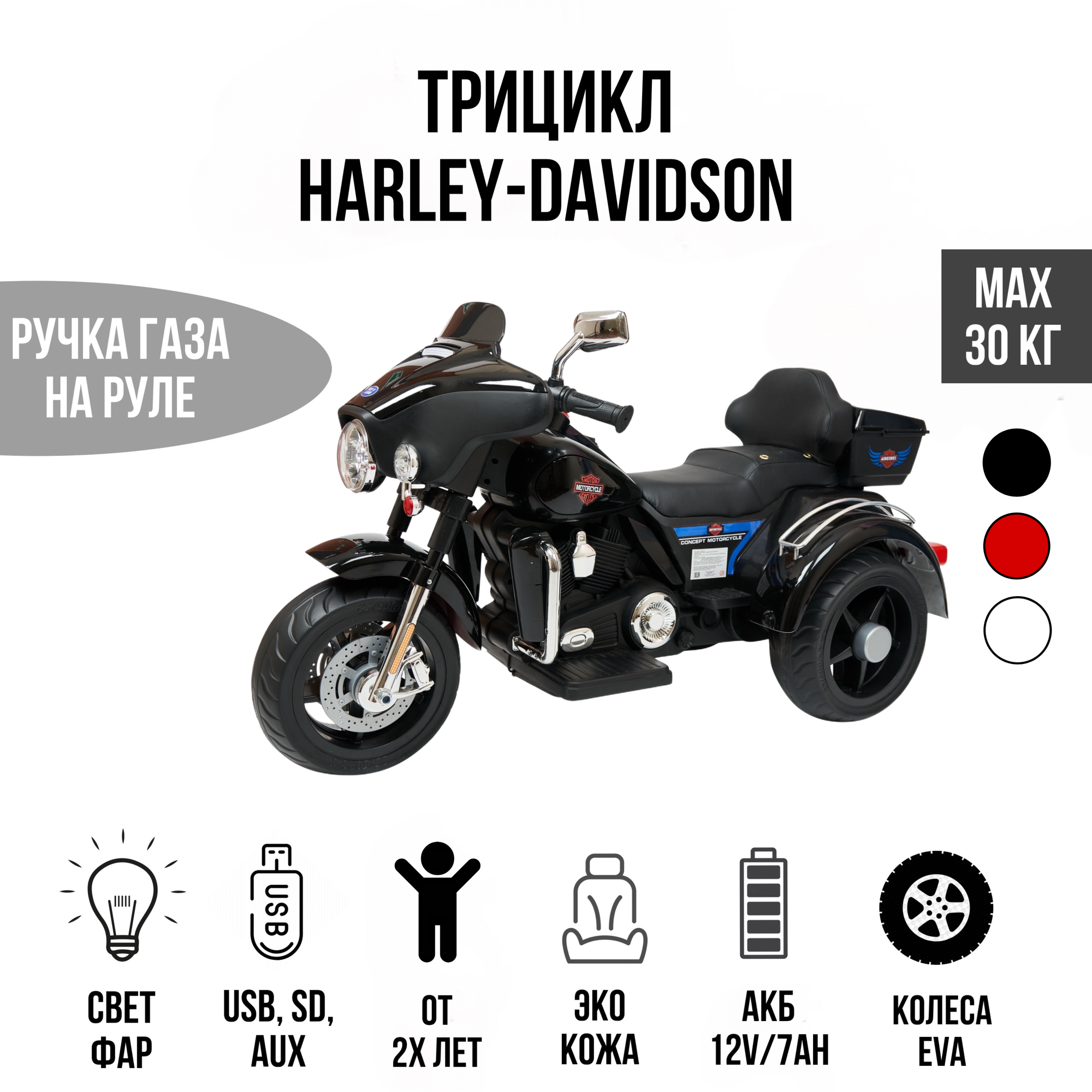 Трицикл Harley-Davidson YBD 7173 черный краска
