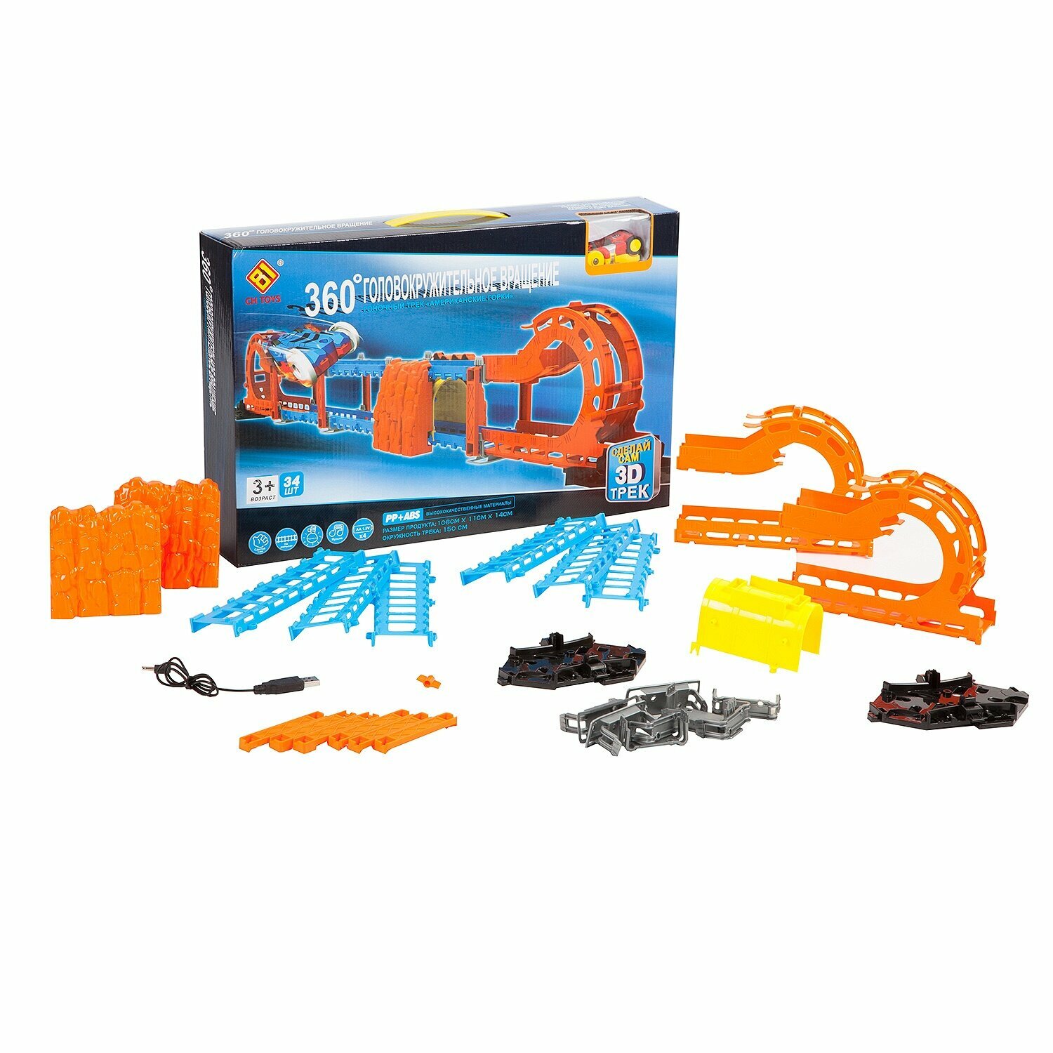 Автотрек 360о Головокружительное вращение, со светом и музык,34 дет., 46×8×30 см, арт. PP-JD33605