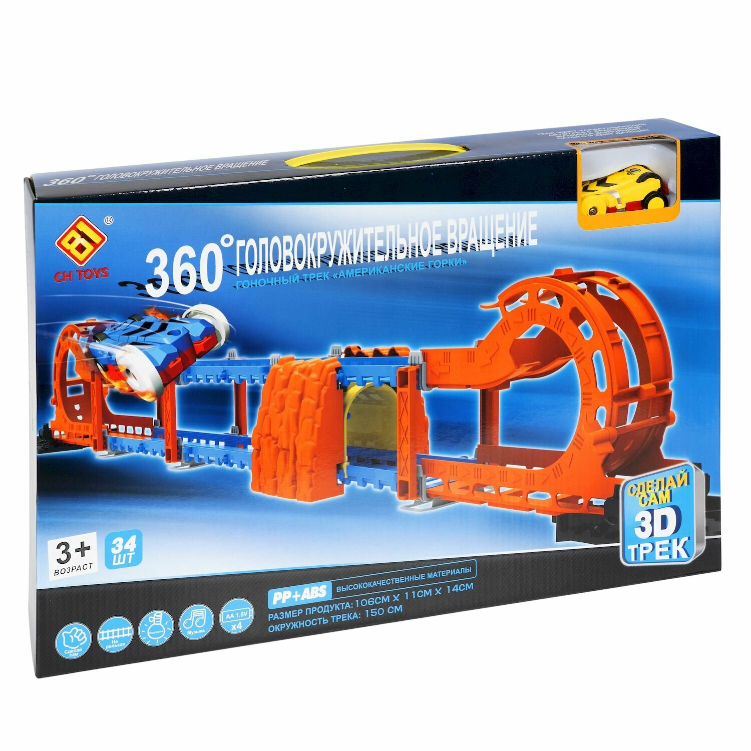 Автотрек 360о Головокружительное вращение, со светом и музык,34 дет.,BOX 46×8×30 см, арт. PP-JD33605