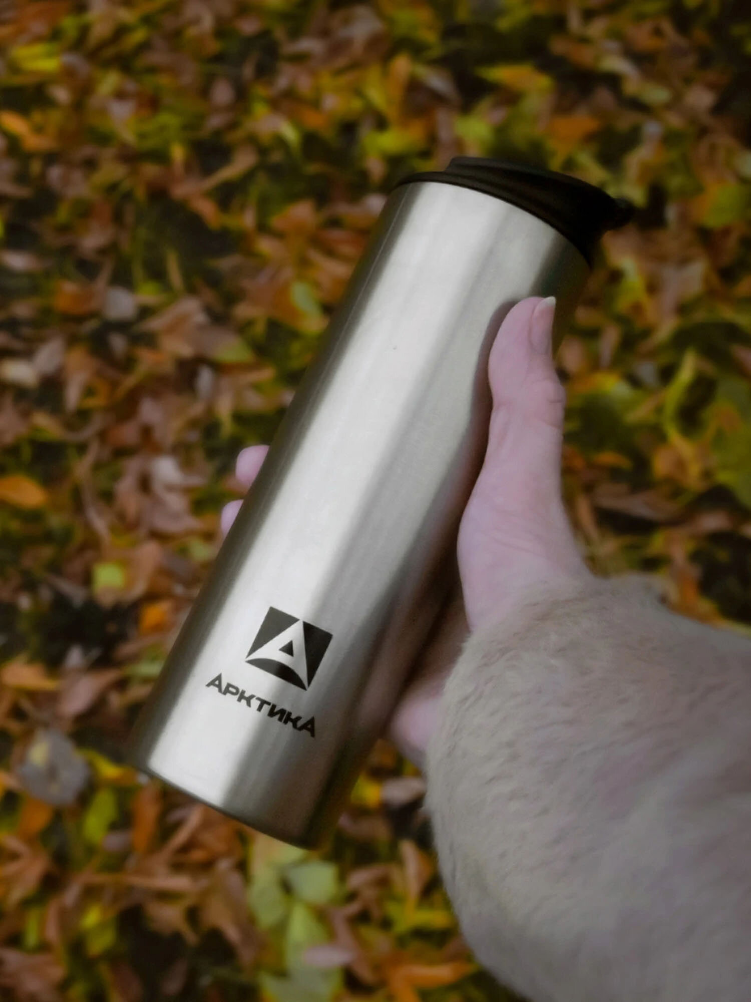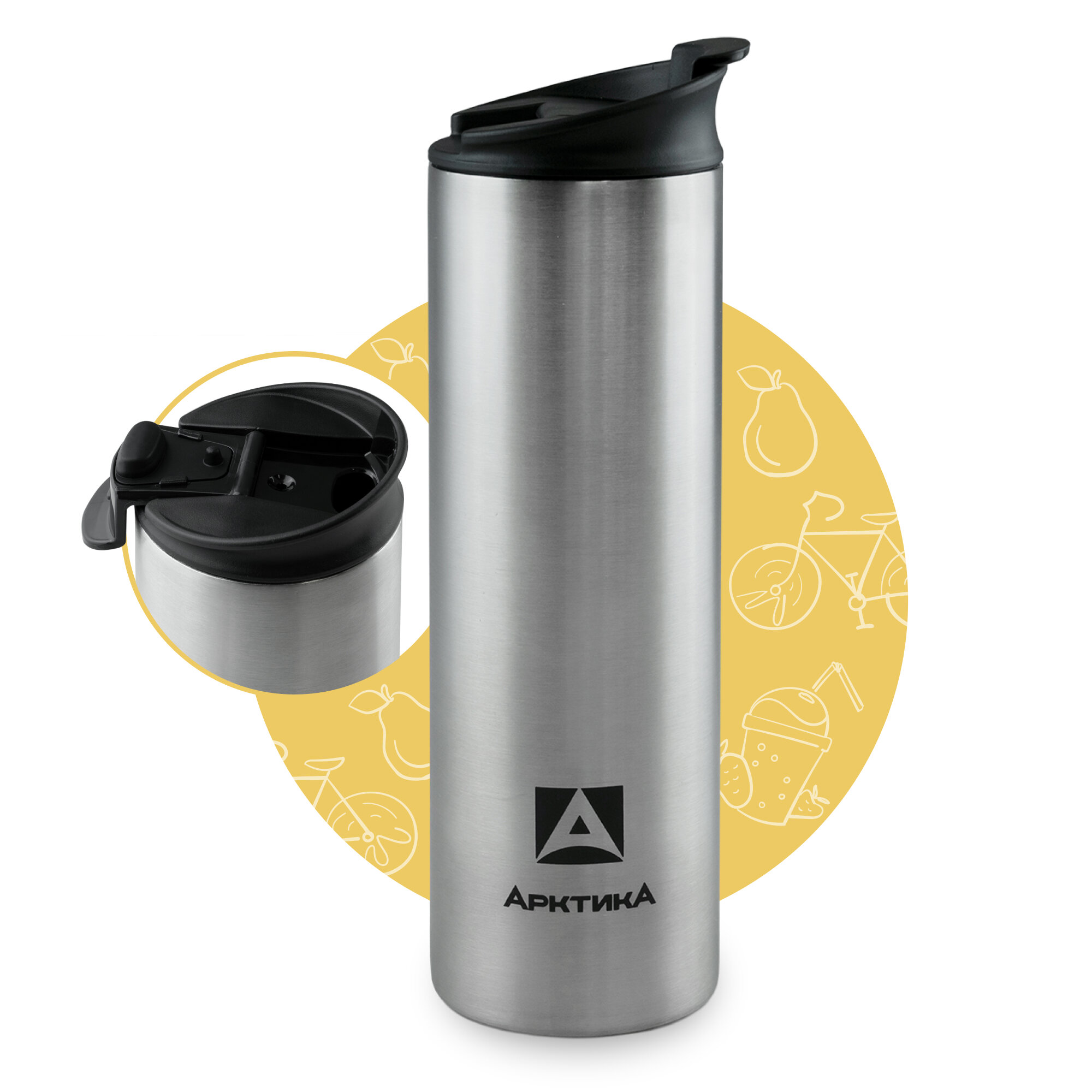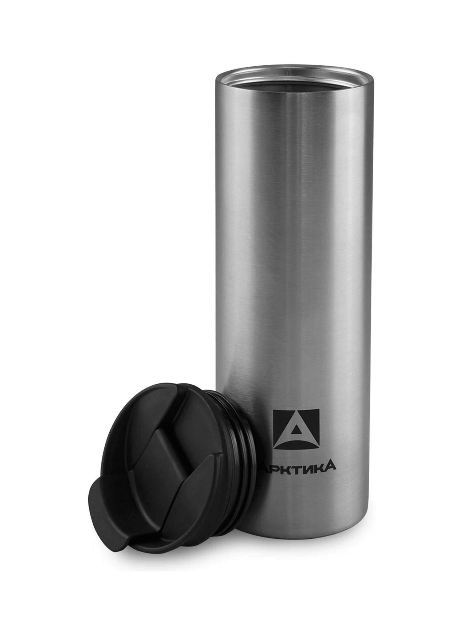 Термокружка для чая и кофе Арктика 710-480 серебристый 0.48 литров легкий термостакан для напитков с крышкой-замком