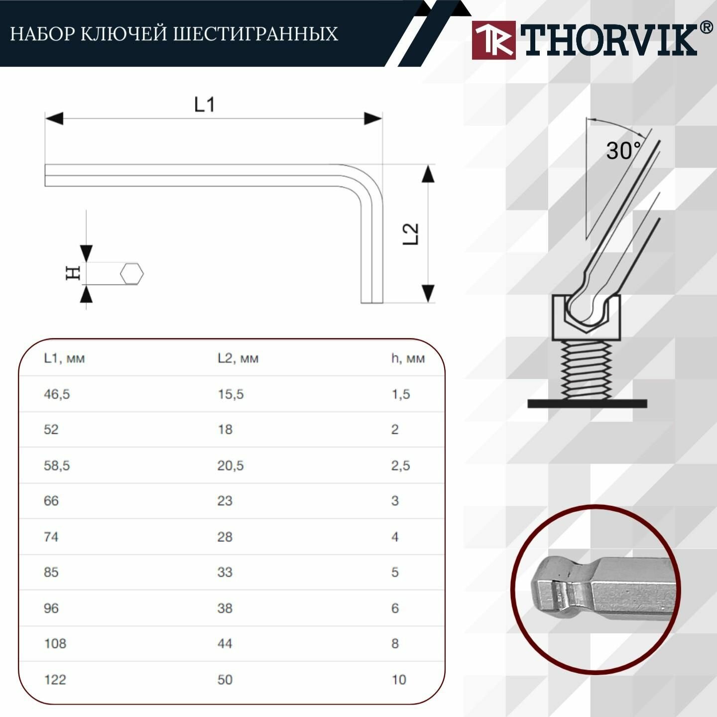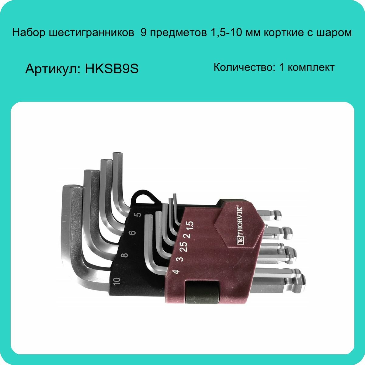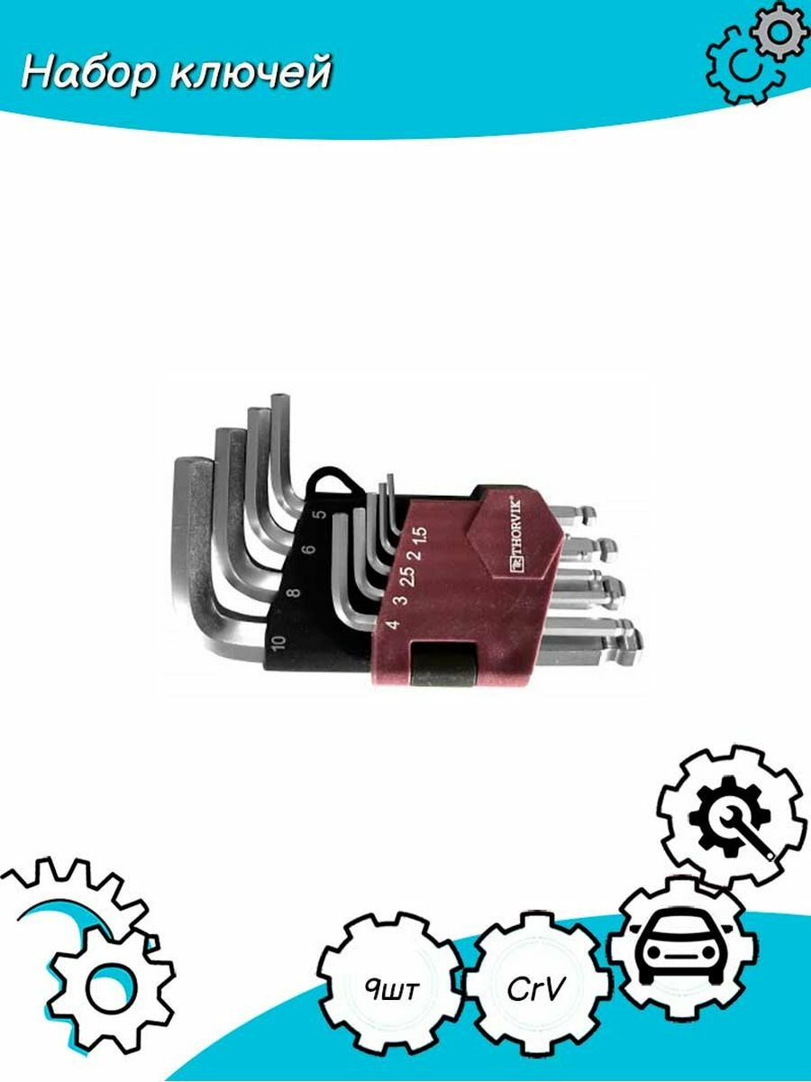 Набор Ключей 6-Гр. Г-Обр. С Шаром H1.5-H10, 9 Предметов THORVIK арт. HKSB9S